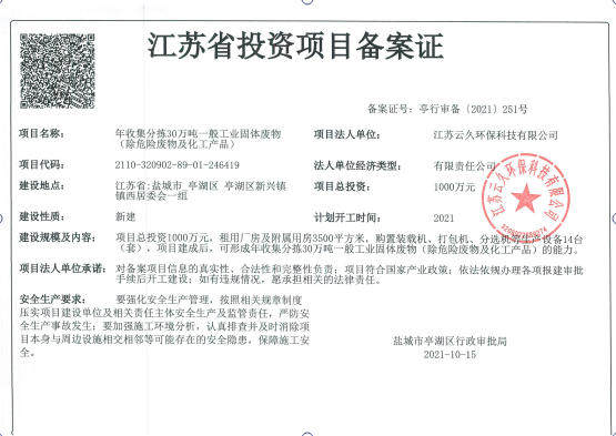公司名稱:江蘇云久環(huán)保科技有限公司 經(jīng)營(yíng)方式: